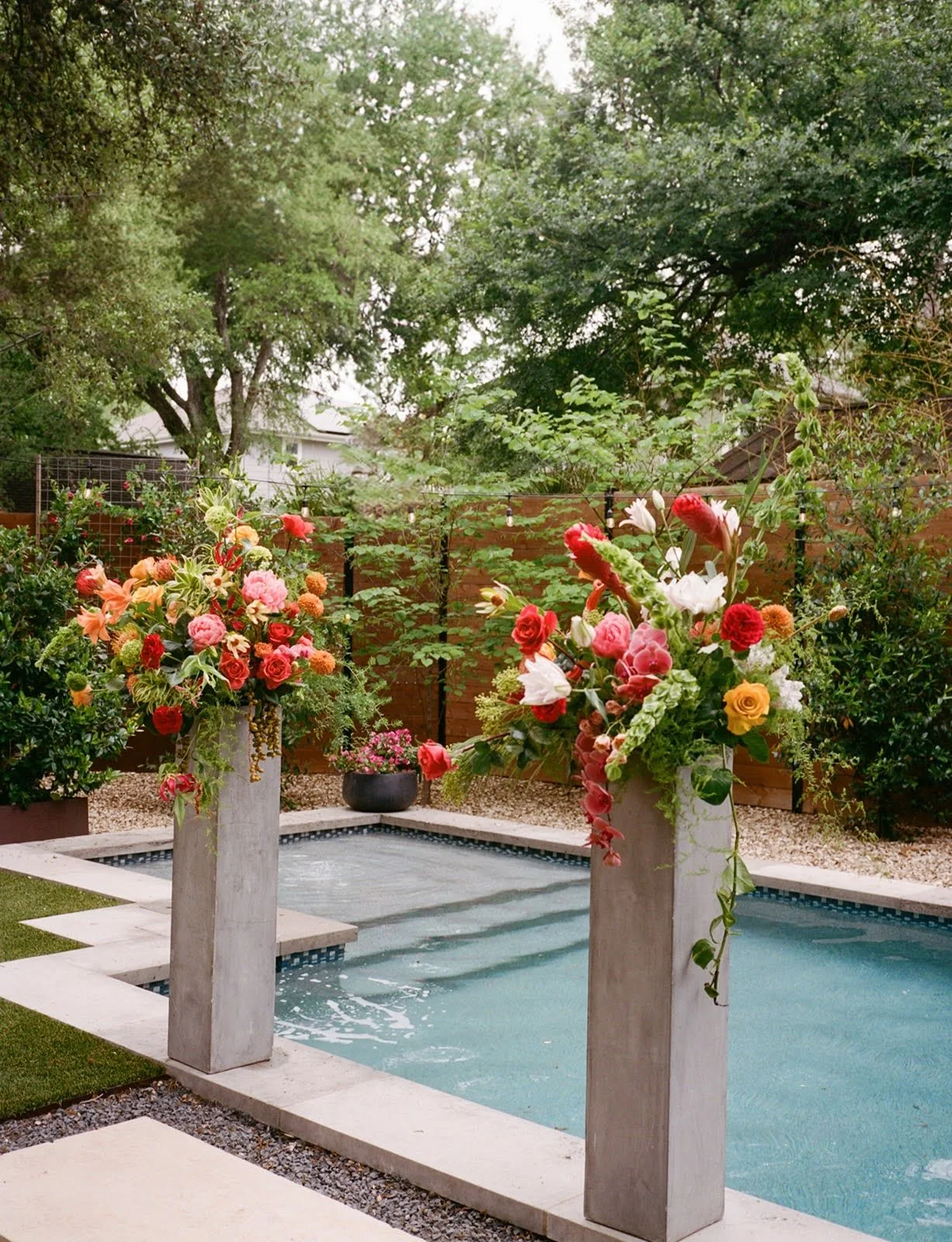A vibrant and eclectic wedding flower design that started with an intimate ceremony in our clients backyard set against the most picturesque landscaping and then moving over to the funky and artistic Hotel Magdalena for the reception.